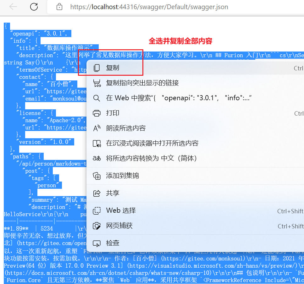 Furion 也提供了 Swagger-Editor.rar 离线包,可直接下载解压并双击 index.html 即可。