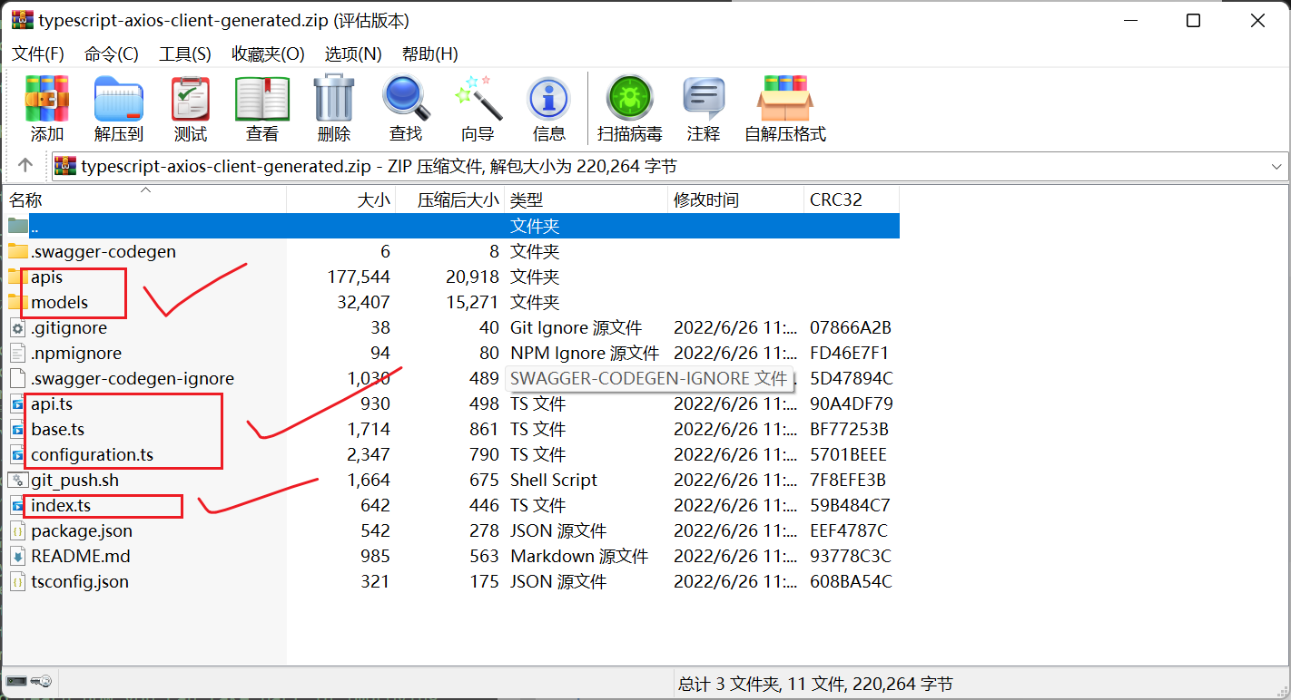 点击 Generate Client 顶部菜单并选择 typescript-axios 进行下载。