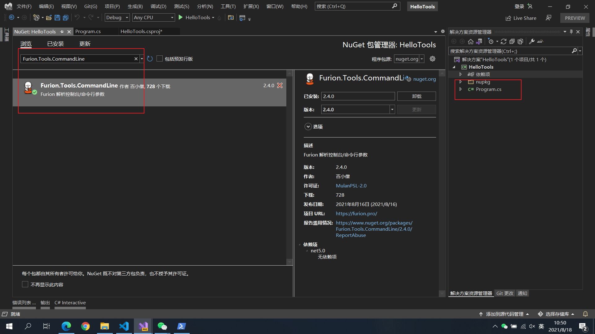 不同的是,npm 中的包采用的是 JavaScript 编写并发布到 https://www.npmjs.com/ 平台,而 dotnet tools 采用 C# 编写并发布到 https://www.nuget.org/ 平台供安装使用。