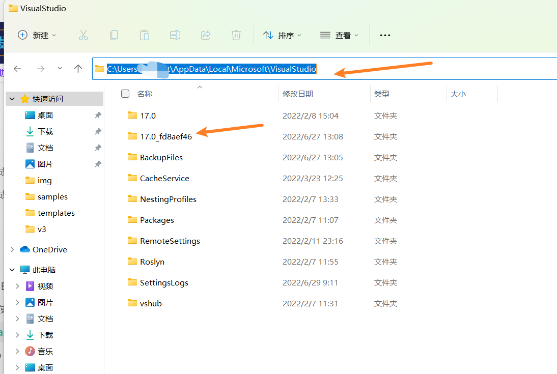 打开电脑的 运行 并输入 %AppData%,之后进入 C:\Users\你的电脑用户名\AppData\Local\Microsoft\VisualStudio 下