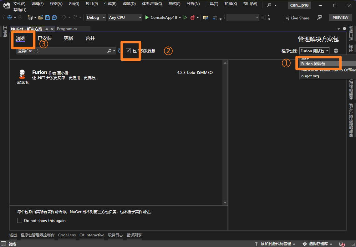 正常情况下,我们都是通过 NuGet 在线平台(Visual Studio 内置的 NuGet 包管理器)安装拓展依赖,但有时候我们不希望发布到 NuGet 平台或者只想在本地使用又或者先在本地测试通过再发布。
