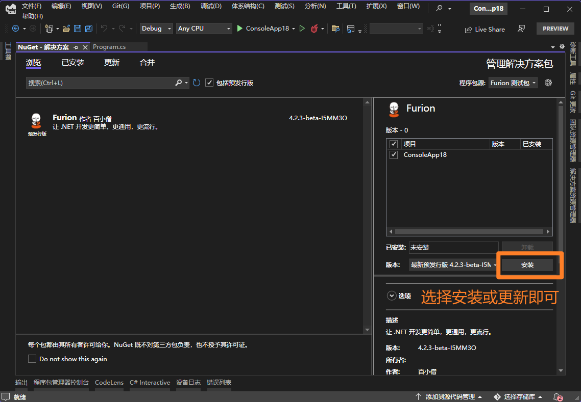 默认情况下,Furion 会根据 Furion.版本号-beta.Issue编号 规则生成 .nupkg 和 .snupkg 包,前者是不包含调试的无符号 NuGet 包,后者则是调试符号包(方便 IDE 调试用的),如: