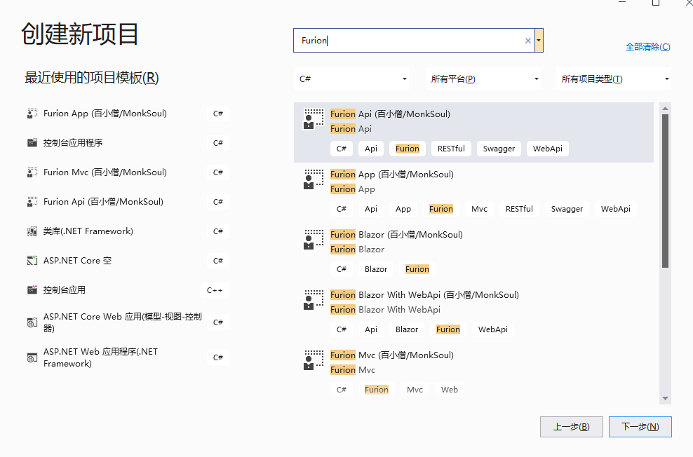 furionapi 对应的是上面列表的 关键词,我们也可以通过 dotnet new --list 查看。